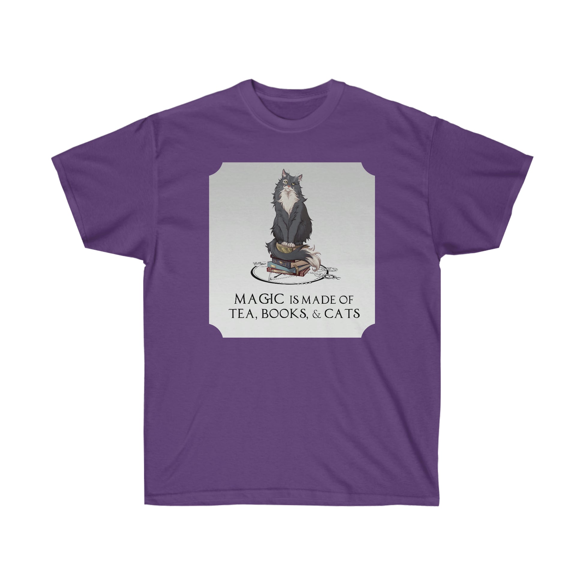 Any fan of magic, snark, or the Love, Lies, and Hocus Pocus Universe will love this stylish tee sporting Sir Kipling at his finest. The quote on it reads "Magic is made of tea, books, and cats." The quality cotton construction makes the design shine, and all materials are sustainably sourced and economically friendly. The shoulders are tapped for a good upper-body fit, and there are no side seams, ensuring a clean, unbroken flow.